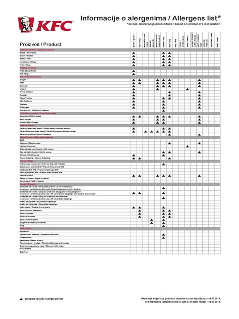 Kfc Provides A Kfc Allergy Menu And Kfc Food Allergy Info.